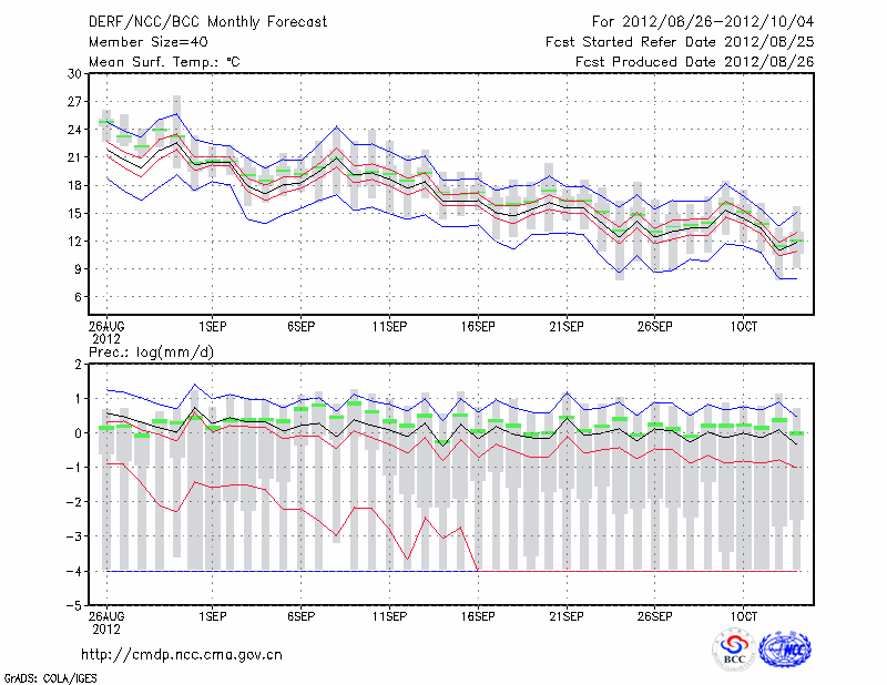 榆 林 (LAT:38.23 LON:109.70) 2012-08-26        预测