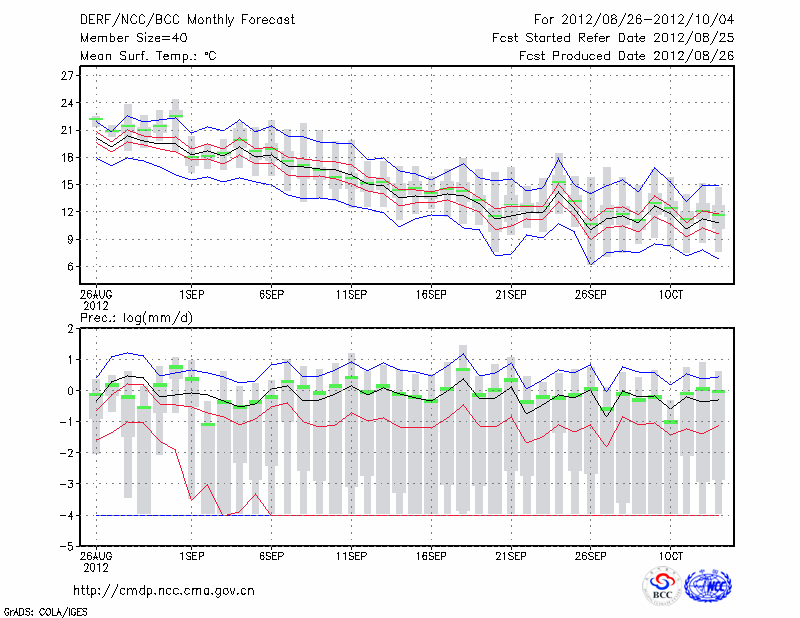 牡 丹 江 (LAT:44.57 LON:129.60) 2012-08-26        预测