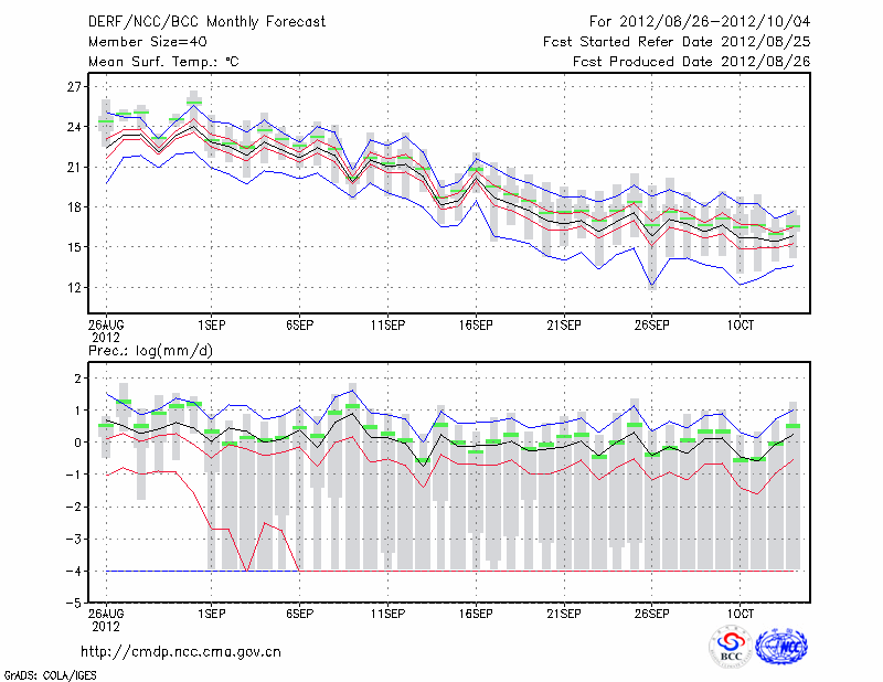丹 东 (LAT:40.05 LON:124.33) 2012-08-26        预测
