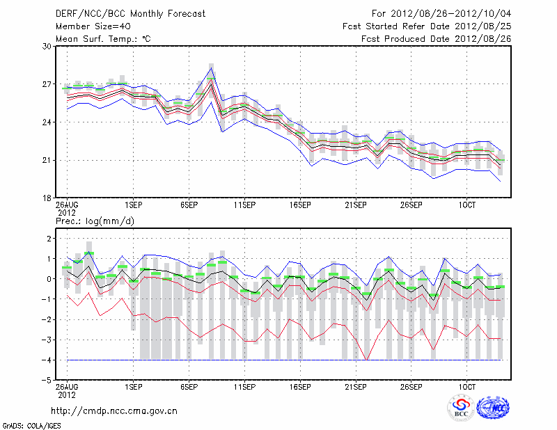 青 岛 (LAT:36.07 LON:120.33) 2012-08-26        预测