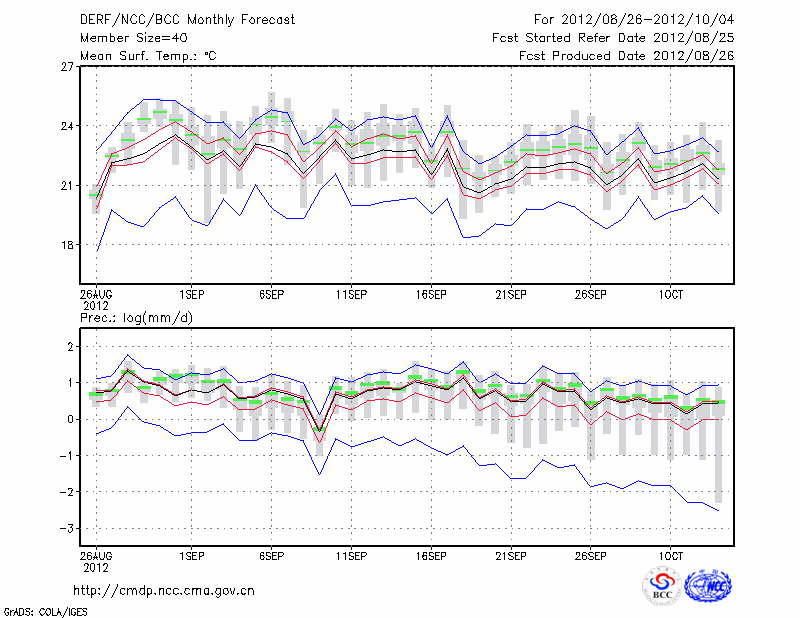 西 昌 (LAT:27.90 LON:102.27) 2012-08-26        预测