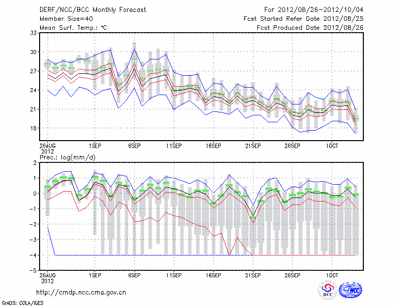 蚌 埠 (LAT:32.95 LON:117.37) 2012-08-26        预测