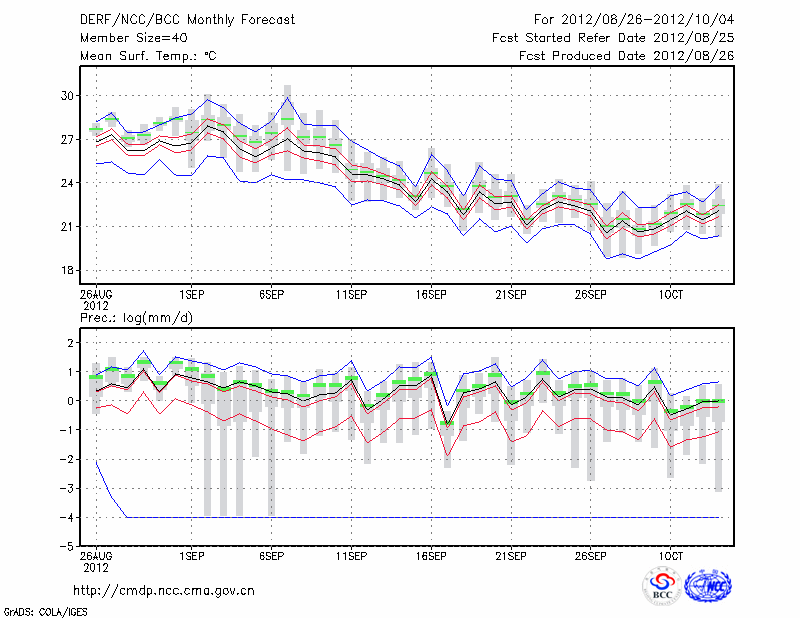 东 台 (LAT:32.87 LON:120.32) 2012-08-26        预测