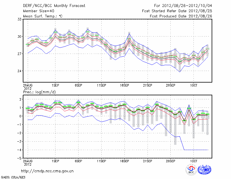 福 州 (LAT:26.08 LON:119.28) 2012-08-26        预测