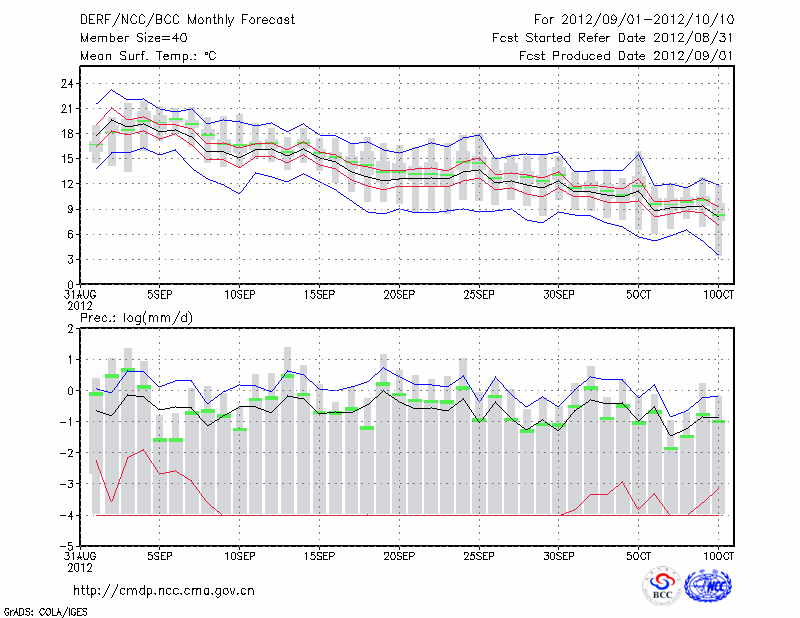 乌兰浩特 (LAT:46.08 LON:122.05) 2012-09-01        预测