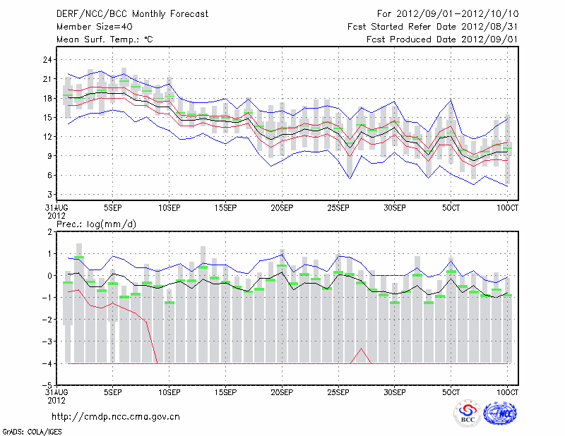 哈 尔 滨 (LAT:45.75 LON:126.77) 2012-09-01        预测