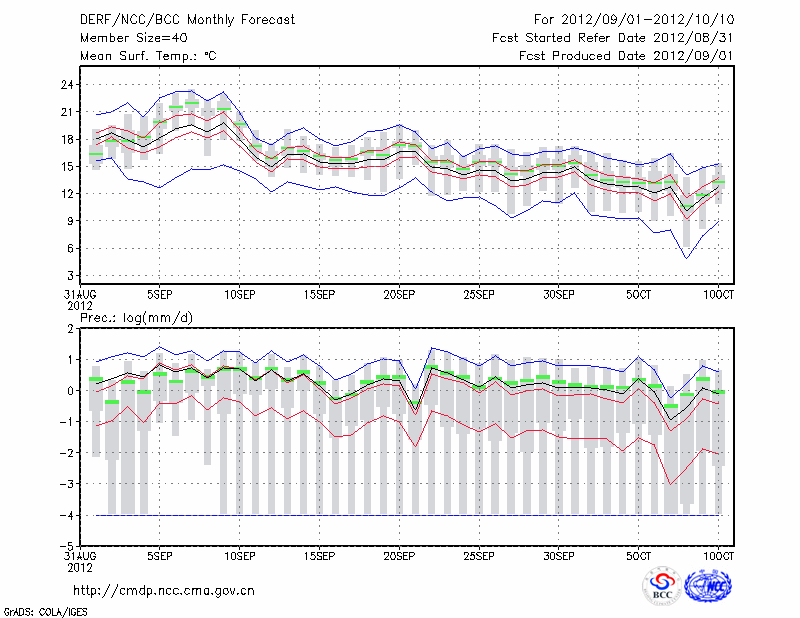 西 峰 镇 (LAT:35.73 LON:107.63) 2012-09-01        预测