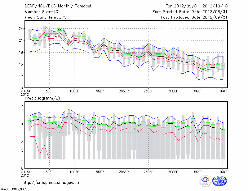 丹 东 (LAT:40.05 LON:124.33) 2012-09-01        预测