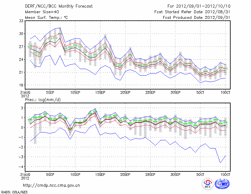宜 宾 (LAT:28.80 LON:104.60) 2012-09-01        预测