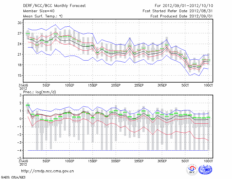 恩 施 (LAT:30.28 LON:109.47) 2012-09-01        预测