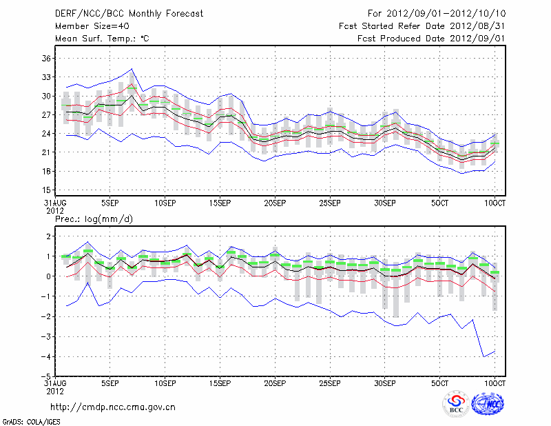 重 庆 (LAT:29.52 LON:106.48) 2012-09-01        预测