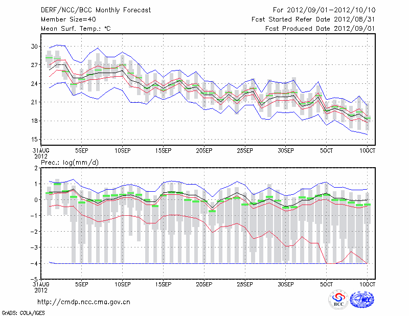 南 京 (LAT:32.00 LON:118.80) 2012-09-01        预测