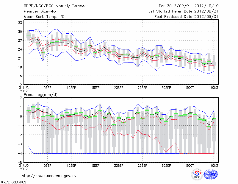合 肥 (LAT:31.87 LON:117.23) 2012-09-01        预测