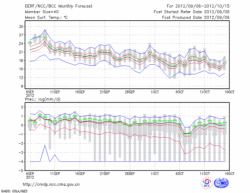 西 安 (LAT:34.30 LON:108.93) 2012-09-06        预测