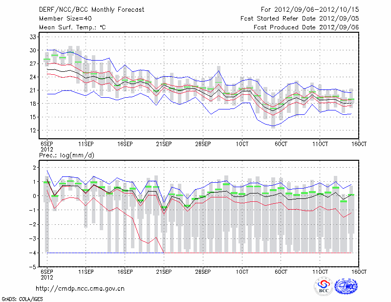 钟 祥 (LAT:31.17 LON:112.57) 2012-09-06        预测