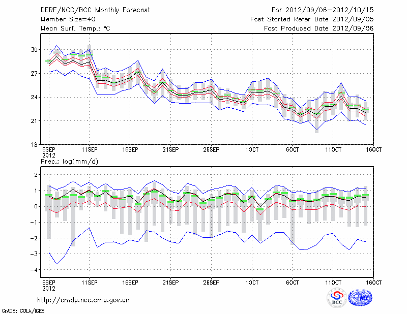 宁 波 (LAT:29.86 LON:121.56) 2012-09-06        预测