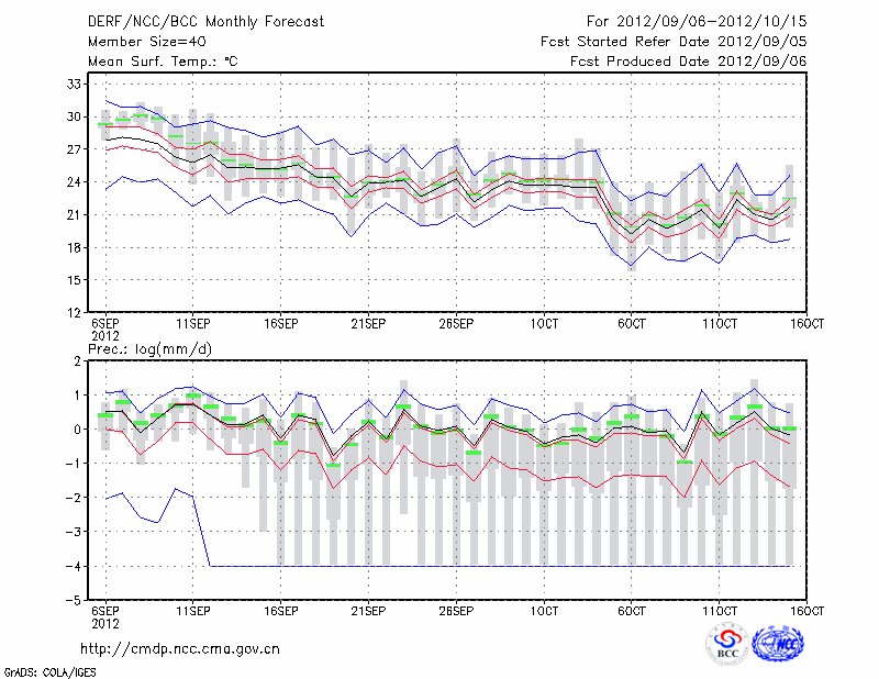 南 昌 (LAT:28.60 LON:115.92) 2012-09-06        预测