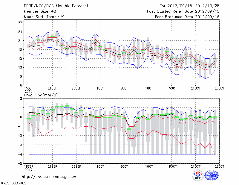 西 安 (LAT:34.30 LON:108.93) 2012-09-16        预测