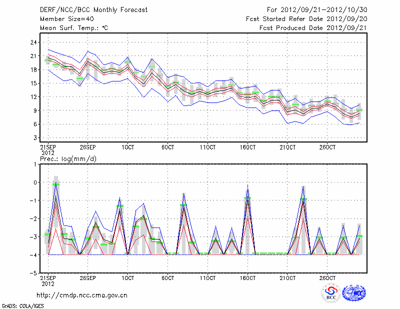 若 羌 (LAT:39.03 LON:88.17) 2012-09-21        预测