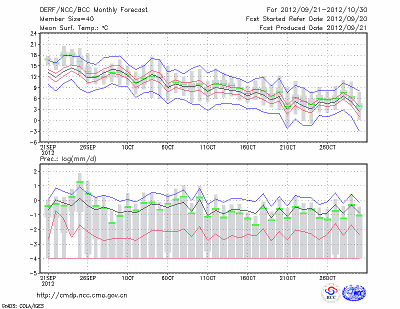 长 春 (LAT:43.90 LON:125.22) 2012-09-21        预测