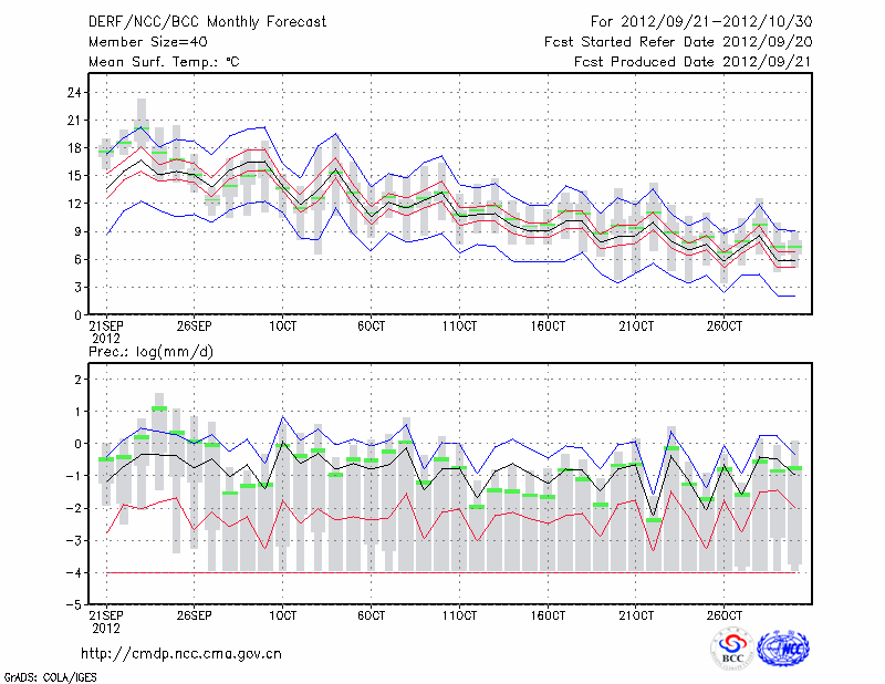 赤 峰 (LAT:42.27 LON:118.97) 2012-09-21        预测