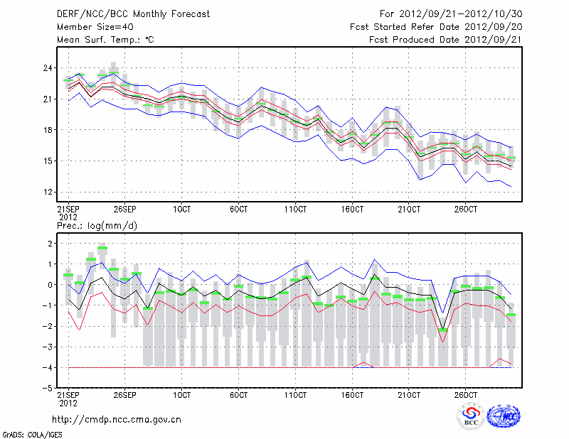 青 岛 (LAT:36.07 LON:120.33) 2012-09-21        预测