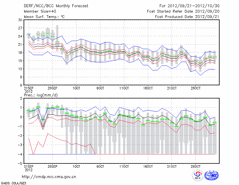 信 阳 (LAT:32.13 LON:114.05) 2012-09-21        预测