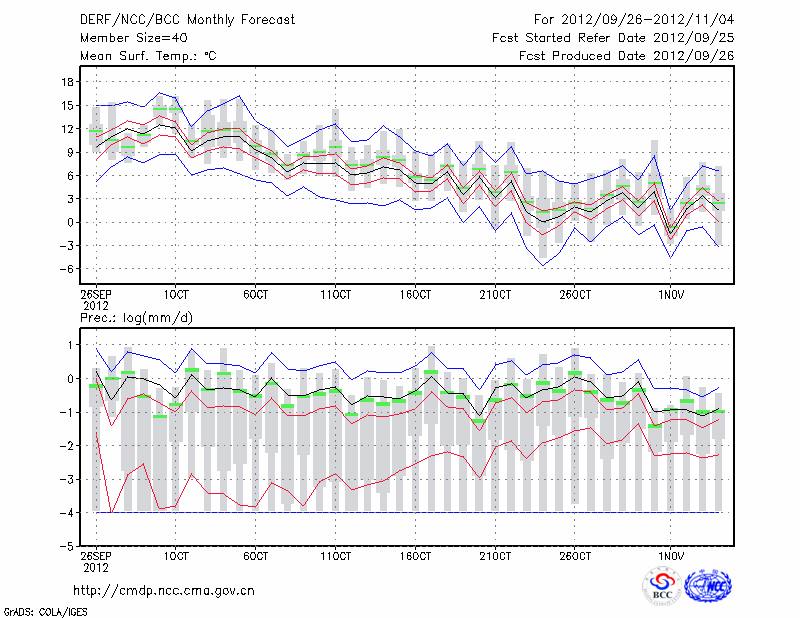 牡 丹 江 (LAT:44.57 LON:129.60) 2012-09-26        预测