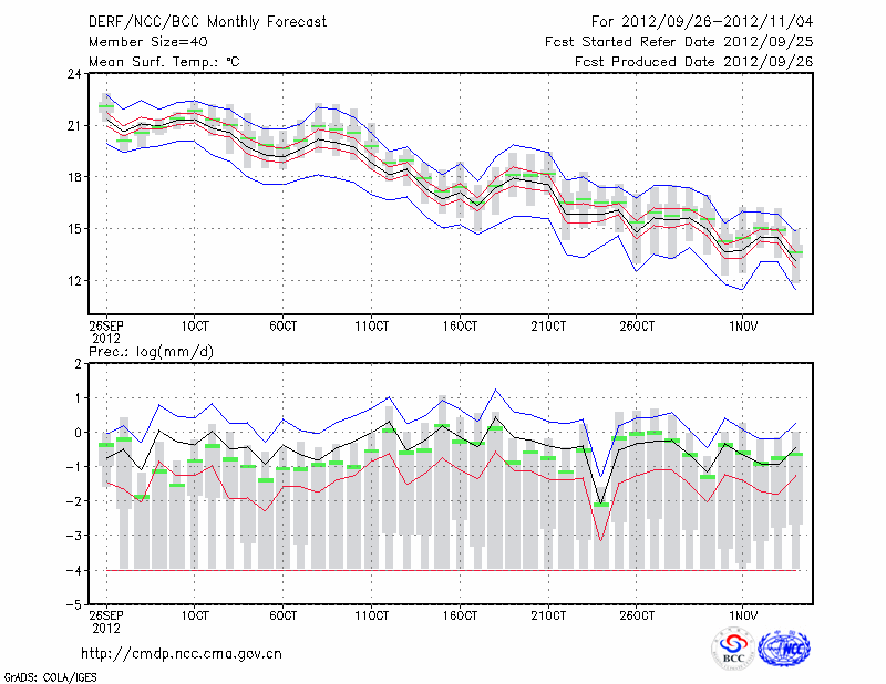 青 岛 (LAT:36.07 LON:120.33) 2012-09-26        预测