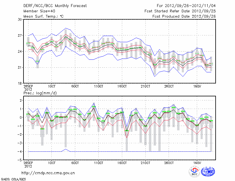 福 州 (LAT:26.08 LON:119.28) 2012-09-26        预测