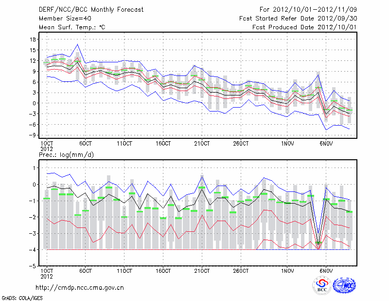 乌兰浩特 (LAT:46.08 LON:122.05) 2012-10-01        预测