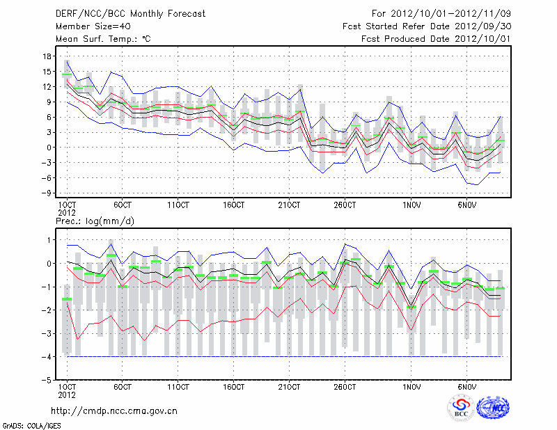 佳 木 斯 (LAT:46.49 LON:130.17) 2012-10-01        预测