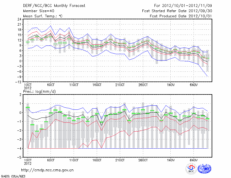 乌鲁木齐 (LAT:43.78 LON:87.62) 2012-10-01        预测