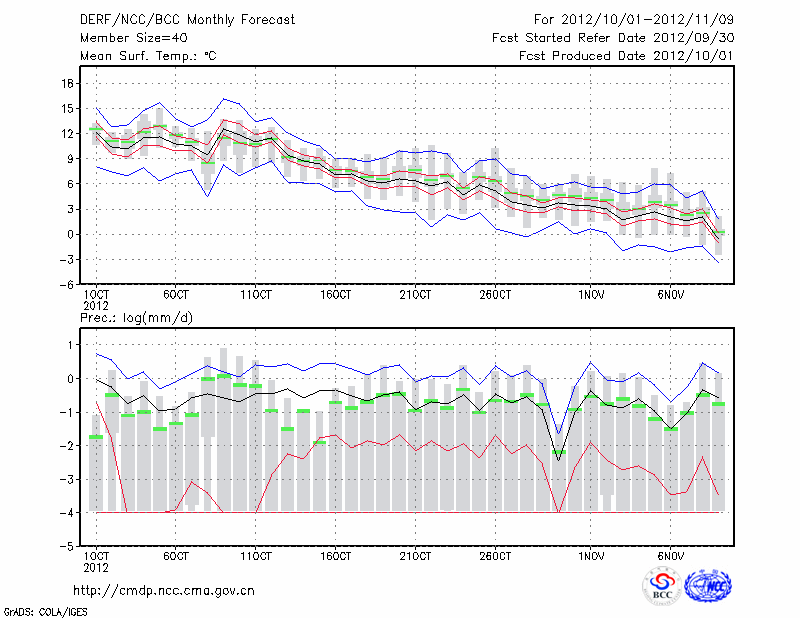 呼和浩特 (LAT:40.82 LON:111.68) 2012-10-01        预测