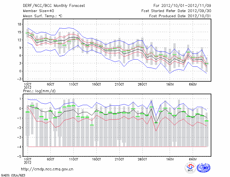 榆 林 (LAT:38.23 LON:109.70) 2012-10-01        预测