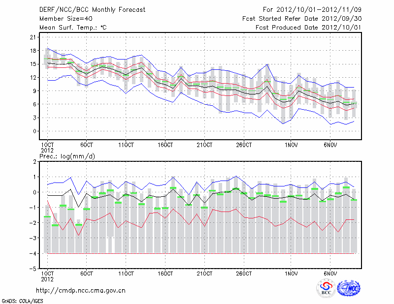 丹 东 (LAT:40.05 LON:124.33) 2012-10-01        预测