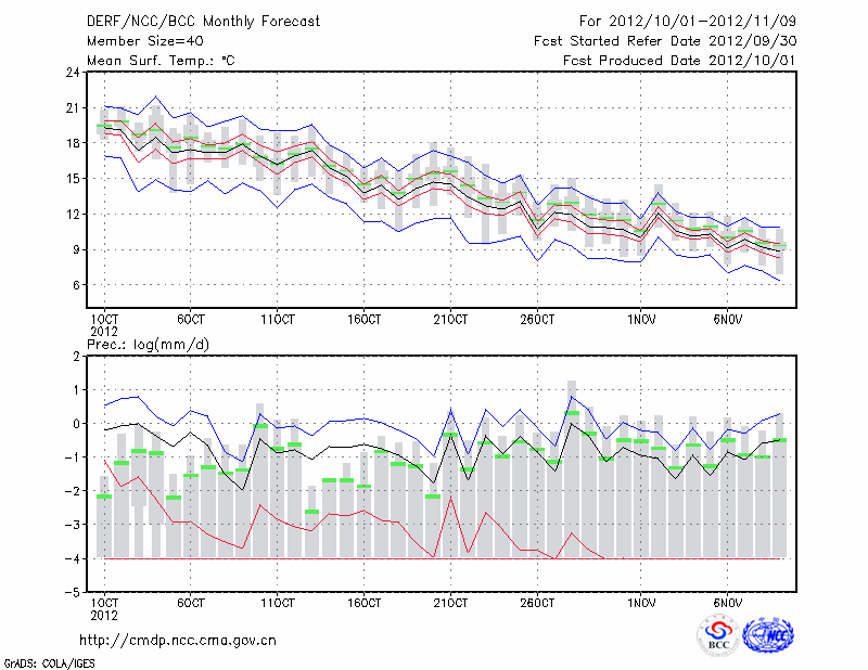 天 津 (LAT:39.10 LON:117.17) 2012-10-01        预测