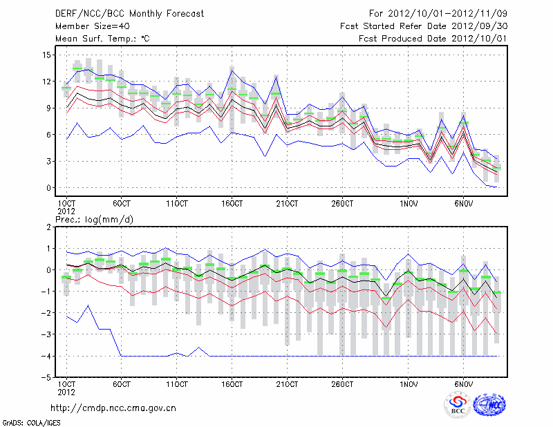 甘 孜 (LAT:31.62 LON:100.00) 2012-10-01        预测