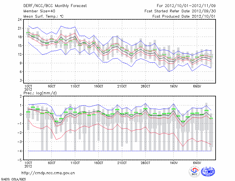 西 安 (LAT:34.30 LON:108.93) 2012-10-01        预测