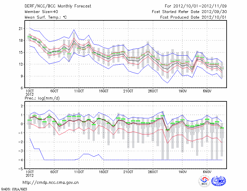 汉 中 (LAT:33.07 LON:107.03) 2012-10-01        预测