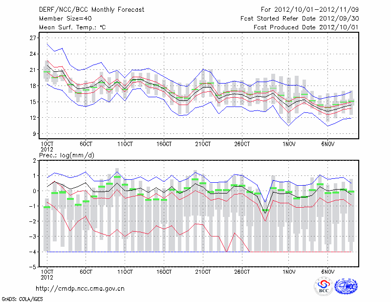 宜 昌 (LAT:30.70 LON:111.30) 2012-10-01        预测