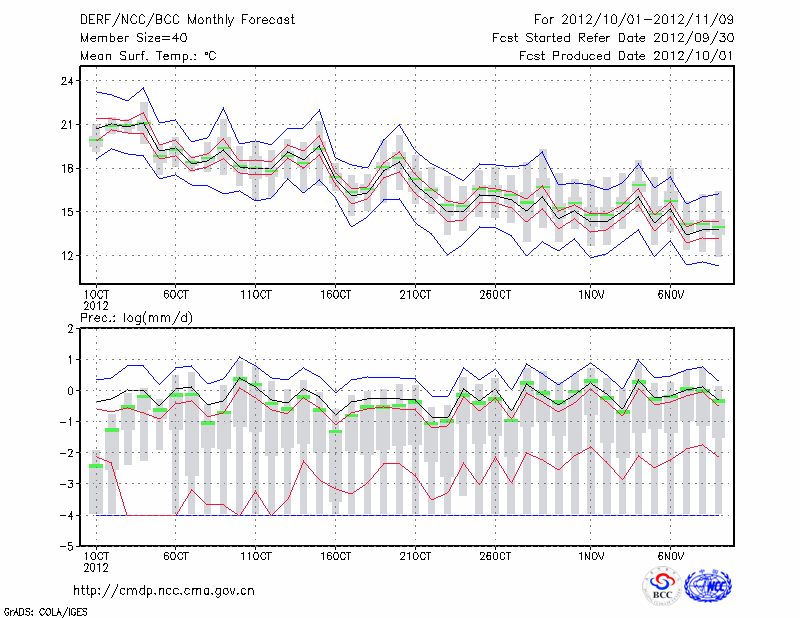 东 台 (LAT:32.87 LON:120.32) 2012-10-01        预测