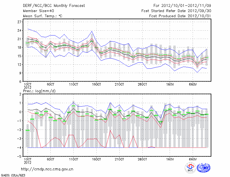 合 肥 (LAT:31.87 LON:117.23) 2012-10-01        预测