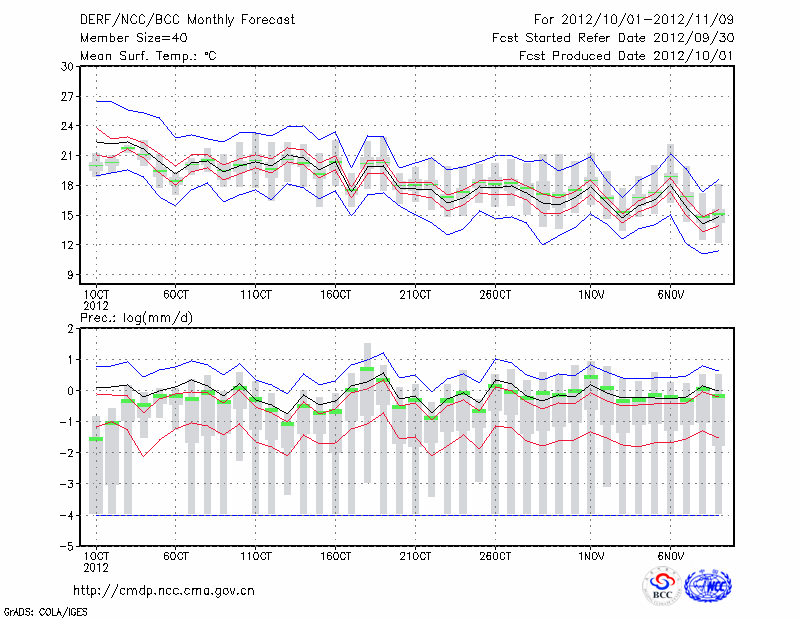 衢 县 (LAT:28.97 LON:118.87) 2012-10-01        预测