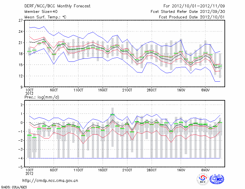 浦 城 (LAT:27.92 LON:118.53) 2012-10-01        预测