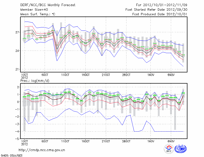 湛 江 (LAT:21.22 LON:110.40) 2012-10-01        预测