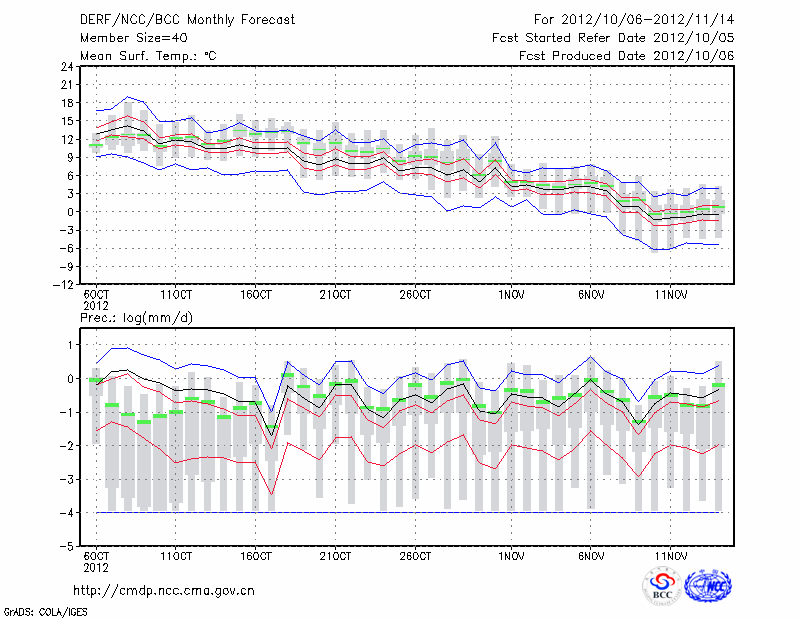 乌 苏 (LAT:44.43 LON:84.66) 2012-10-06        预测