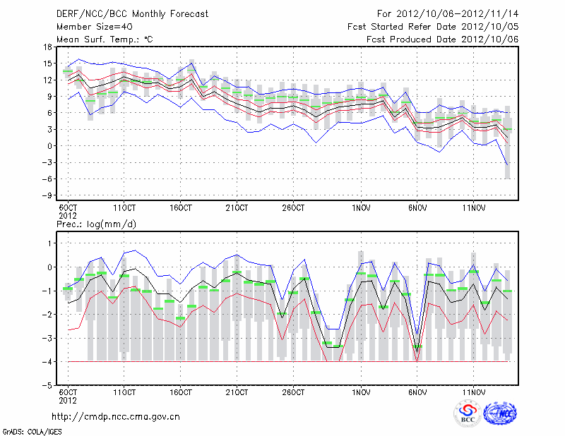 银 川 (LAT:38.48 LON:106.22) 2012-10-06        预测