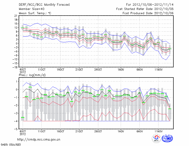 长 春 (LAT:43.90 LON:125.22) 2012-10-06        预测