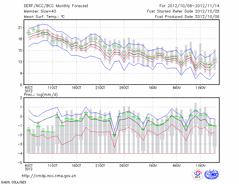 青 岛 (LAT:36.07 LON:120.33) 2012-10-06        预测